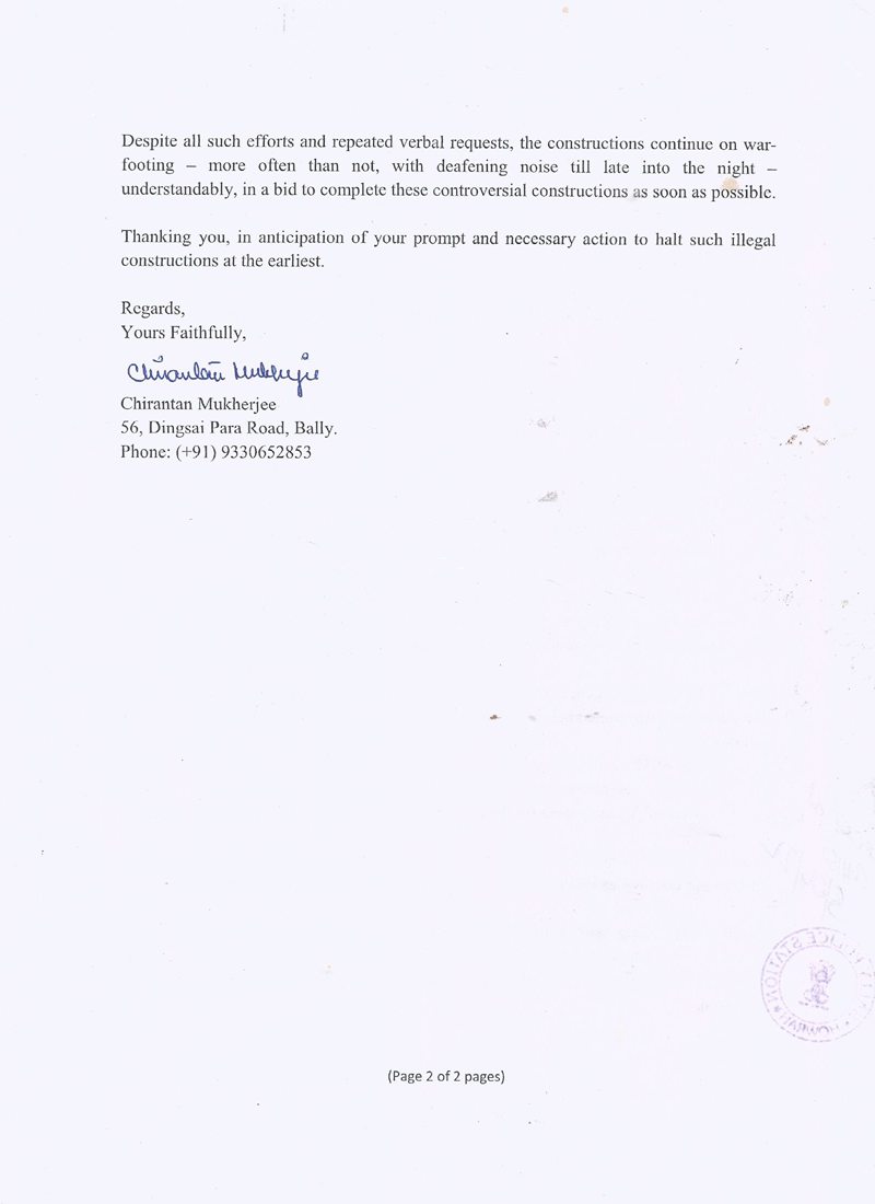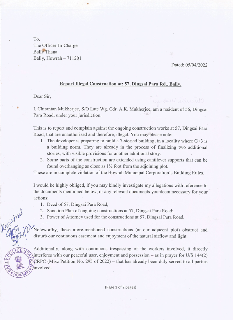 The above is a request of inspection at Bally PS, Howrah, verbally confirmed to be forwarded to Bally Municipality for the relevant inspection. It also points out the willful and intentional violation of U/s 144(2) CrPc. To open/download PDF file, click below.